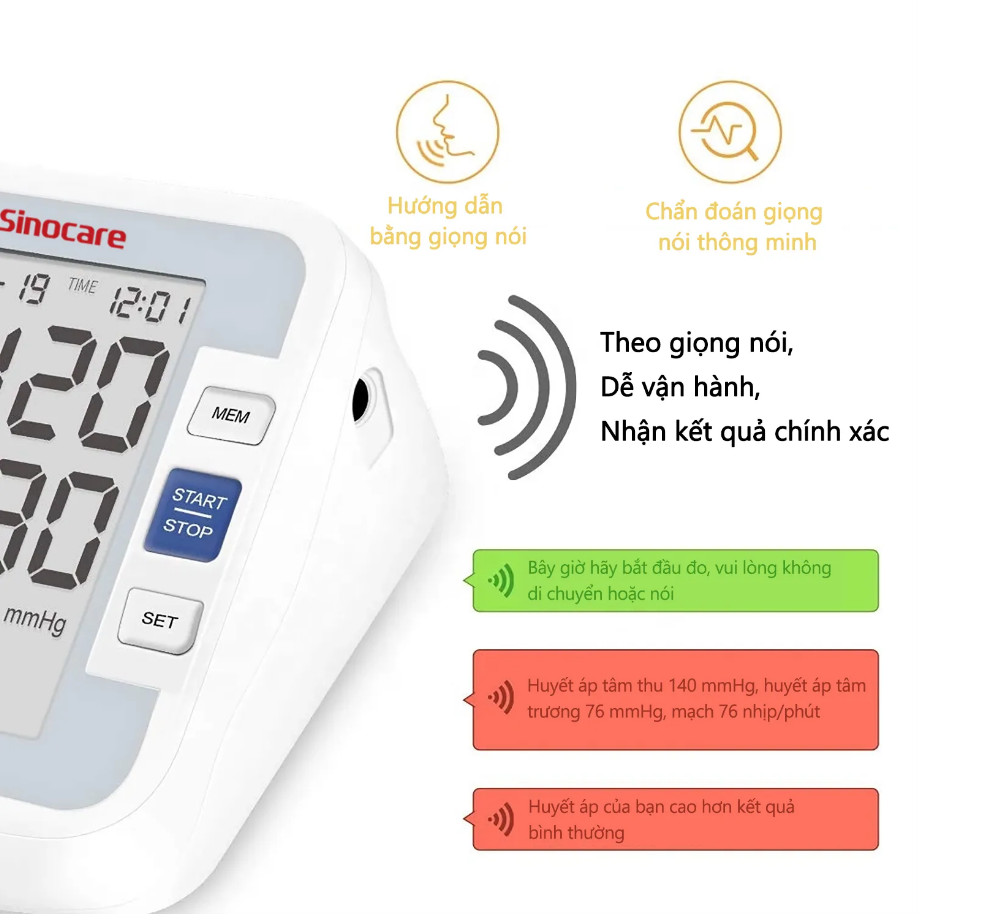 Máy đo huyết áp Sinocare BA-801 Chính Hãng ( Giọng nói Tiếng Việt)