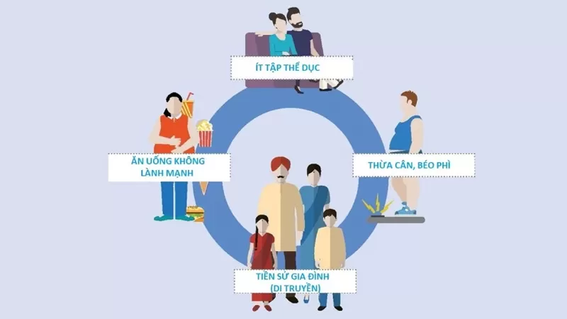 Các yếu tố nguy cơ dẫn đến đái tháo đường tuýp 2 bao gồm: